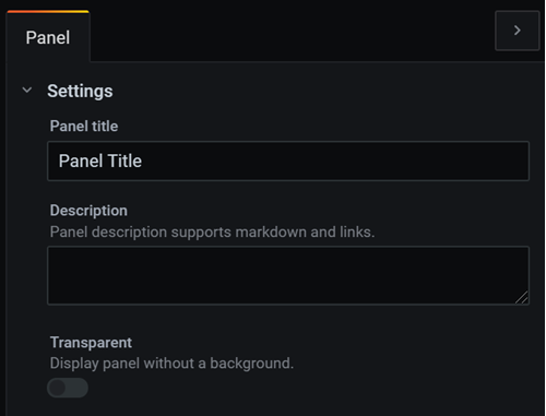 Panel title - Text entered in this field is displayed at the top of your panel in the panel editor and in the dashboard.