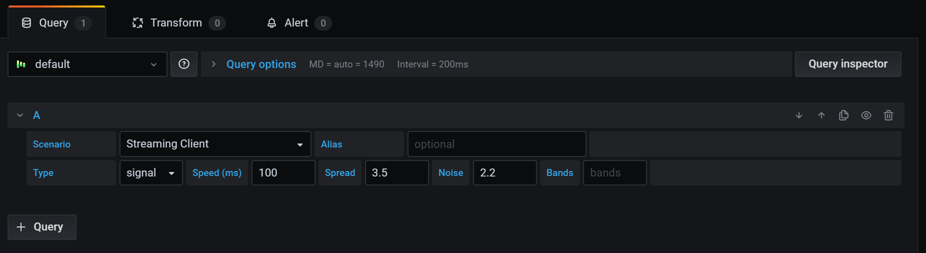 - Query tab - Select your data source and enter queries here. For more information, refer to Queries.