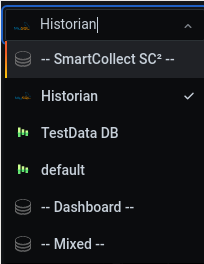 - Mixed - Select this to query multiple data sources in the same panel. When this data source is selected, SmartCollect SC² allows you to select a data source for every new query that you add.