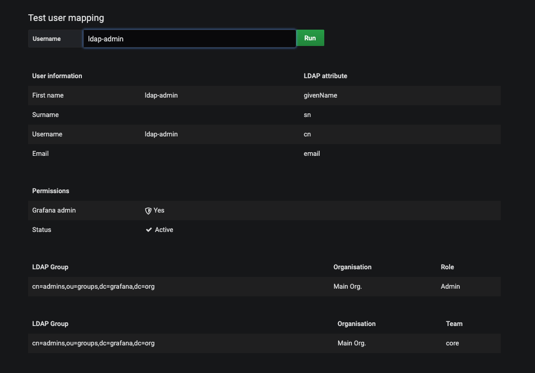 - If the user is found within any of your LDAP instances, the mapping information is displayed