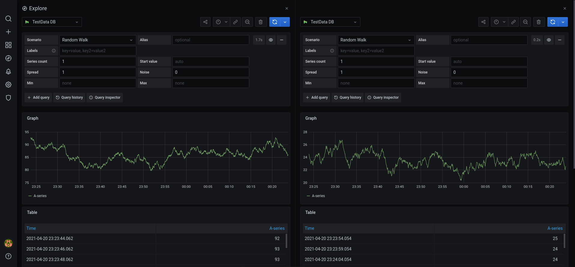 If you just want to explore your data and do not want to create a dashboard, then Explore makes this much easier. If your data source supports graph and table data, then Explore shows the results both as a graph and a table. This allows you to see trends in the data and more details at the same time.