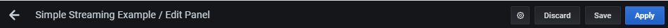 - Apply - Applies changes you made and then closes the panel editor, returning you to the dashboard. You will have to save the dashboard to persist the applied changes.