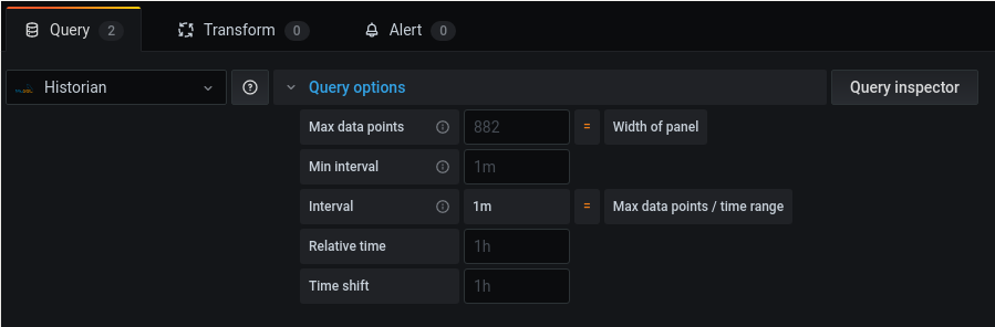 Queries are how SmartCollect SC² panels communicate with data sources to get data for the visualization. A query is a question written in the query language used by the data source. SmartCollect SC² asks, “Hey data source, would you send me this data, organized this way?” If the query is properly formed, then the data source responds. How often the query is sent to the data source and how many data points are collected can be adjusted in the panel data source options.